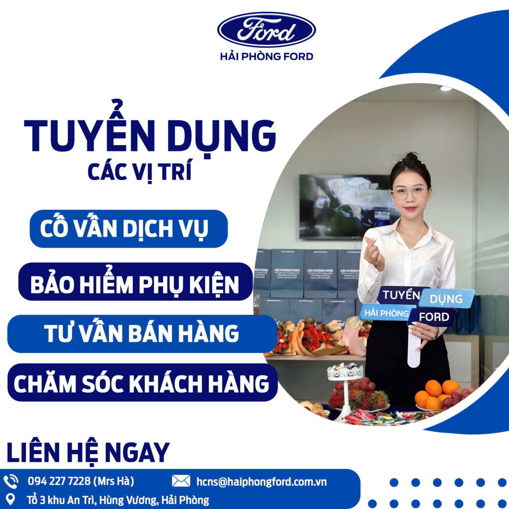 Hải Phòng Ford – Đại lý ủy quyền chính hãng của Ford Việt Nam hiện đang tuyển dụng nhiều vị trí với thu nhập hấp dẫn, môi trường chuyên nghiệp và cơ hội thăng tiến rõ ràng.